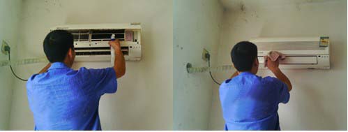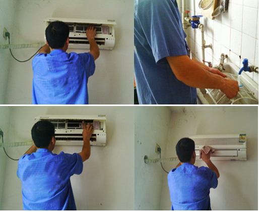 四、清洗室内机,拆过滤网,洗过滤网,安装过滤网。